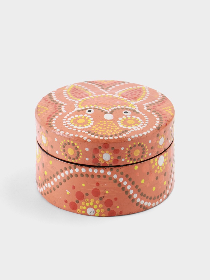 Деревянная шкатулка «Кролик» — круглая коробочка из дерева албезии с ярким оранжевым покрытием и дружелюбным зверьком на крышке. Её форма и образ отсылают к весеннему настроению и светлому празднику Пасхи, но при этом она остаётся универсальной: подходит для хранения мелочей, украшений или сладостей. Лёгкая, тёплая на ощупь, с характером — как будто сама просится в руки.