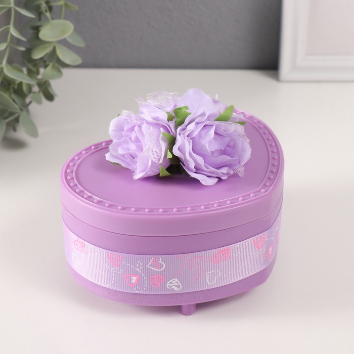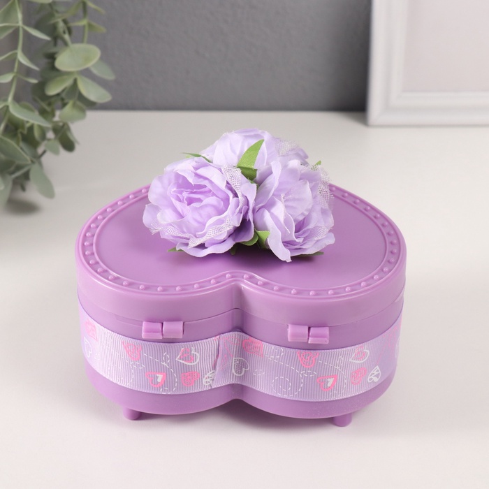 Шкатулка музыкальная механическая «Нежные розы», пластик, фиолетовая, 12×13.5×10.5 см