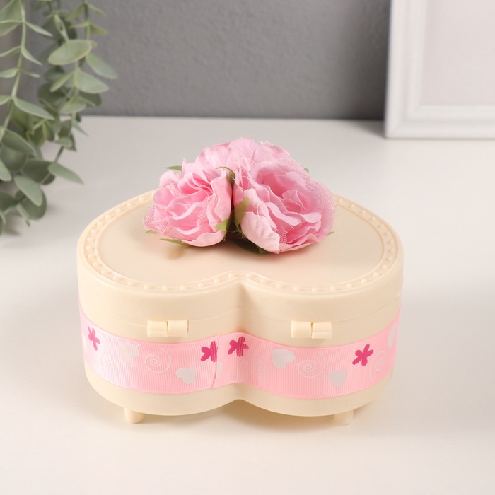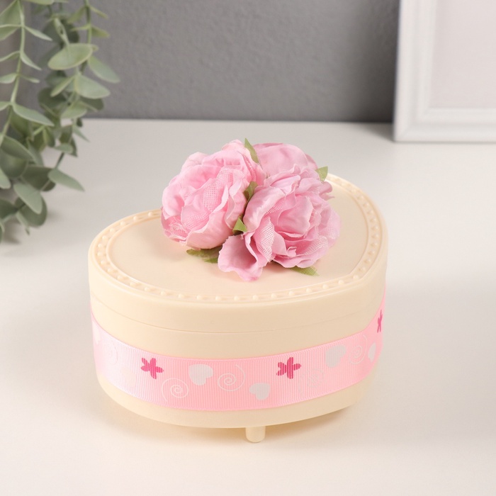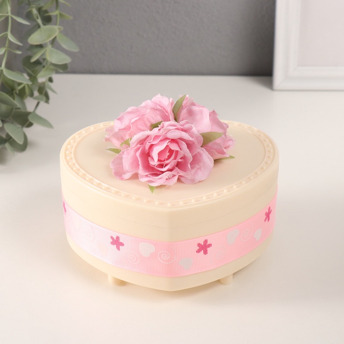 Шкатулка музыкальная механическая «Нежные розы», пластик, молочная, 12×13.5×10.5 см