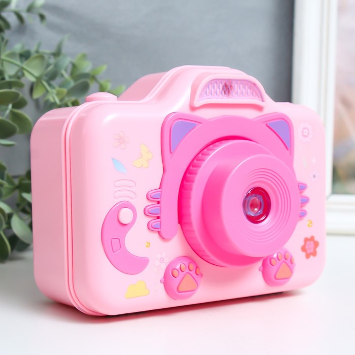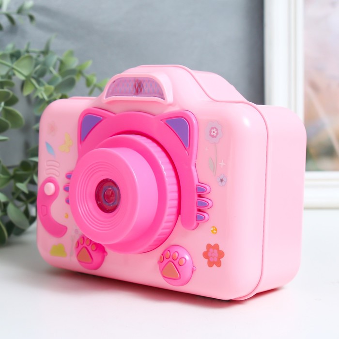 Шкатулка музыкальная механическая свет «Фотоаппарат-кошечка», пластик, розовый, 10.5×12.5×16 см