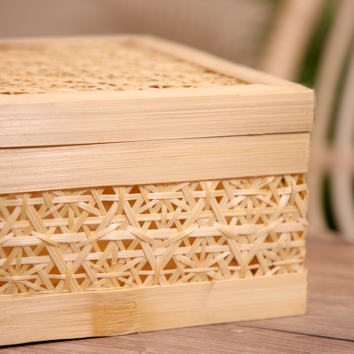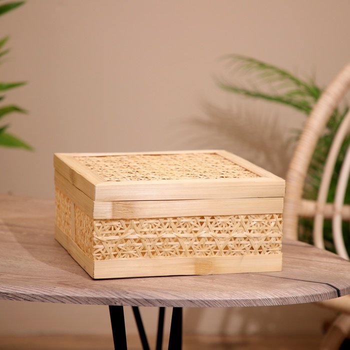 Шкатулка плетёная с крышкой, 25×25×12 см, бамбук