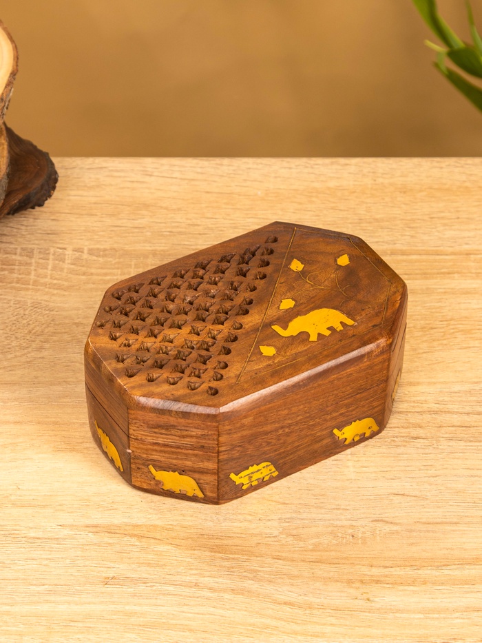 Шкатулка резная «Слоник в саду», 15×10×5 см, дерево шишам