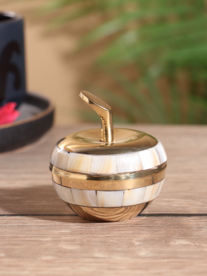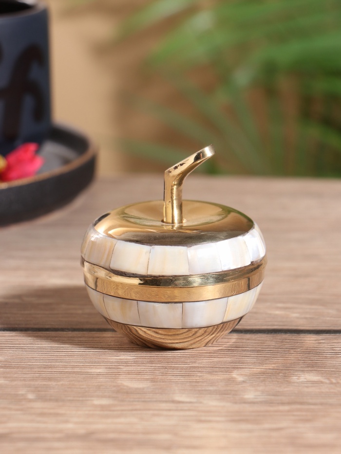 Шкатулка «Яблоко золотое», 6×6×6.5 см, латунь с перламутром