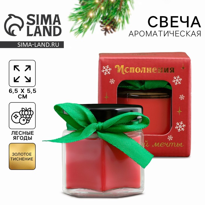 Ароматическая свеча новогодняя в банке «Исполнения заветной мечты», лесные ягоды, 5×5.5×5.5 см
