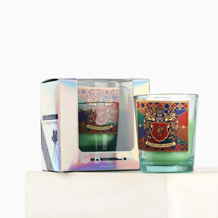 Ароматическая свеча в стакане «Магический аромат», сосна, в голографической коробке, 5×6 см