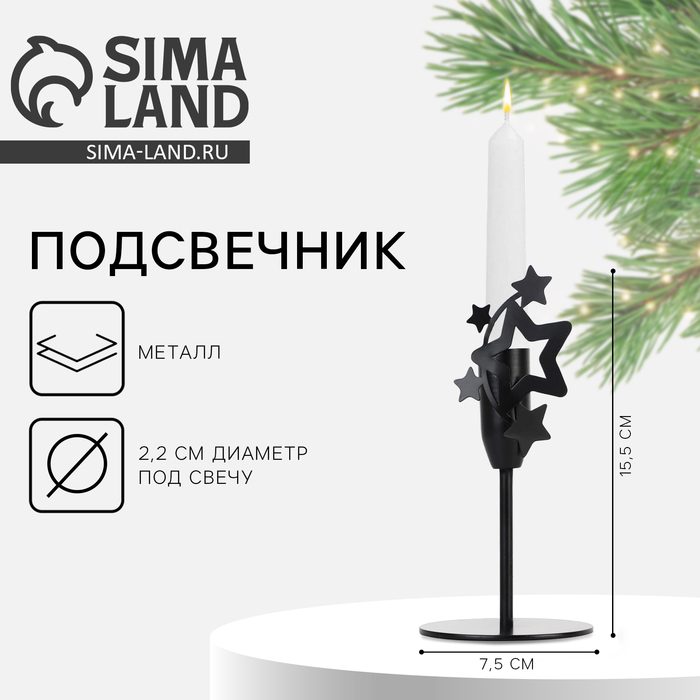Подсвечник новогодний «Звезды», чёрный, 7.4×15.3 см, d= под свечу 2.2 см
