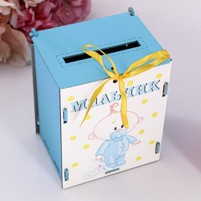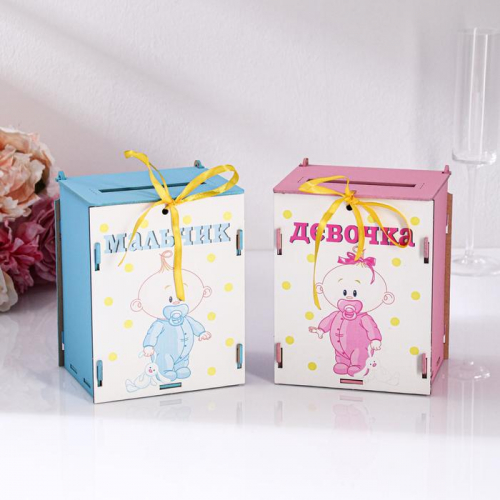 Свадебный банк для сбора денег «На новорожденных. Мальчик/Девочка», розово-голубой, 13.5×11