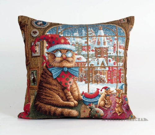 Снеговики у ёлки - гобеленовая наволочка