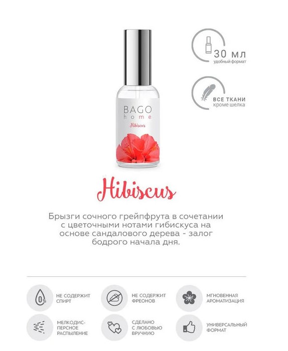 Гибискус BAGO home спрей ароматический для дома 30 мл