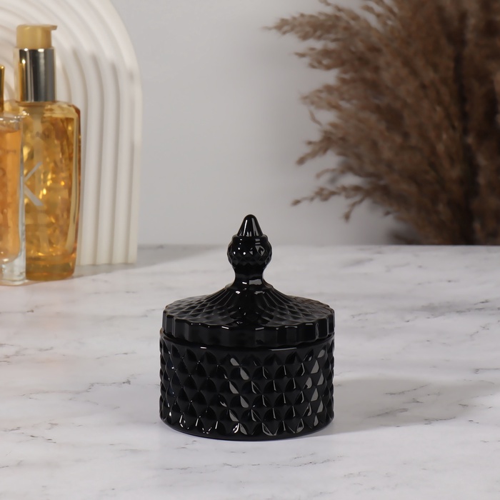 Стеклянная шкатулка для украшений «Ромбы и купол», с крышкой, d=8.3×10.5 см, чёрный
