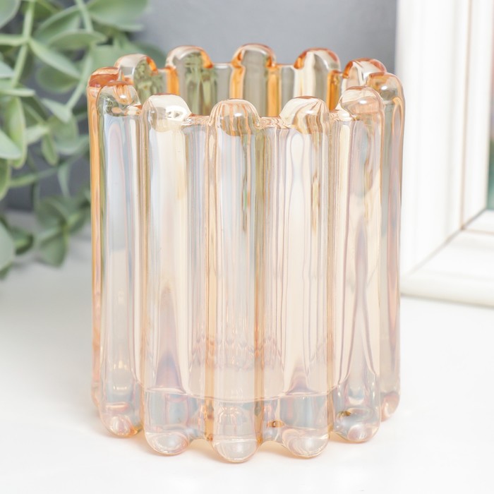 Стеклянный подсвечник на 1 свечу «Блюр», d=6.5 см, карамель, 9×9×11 см