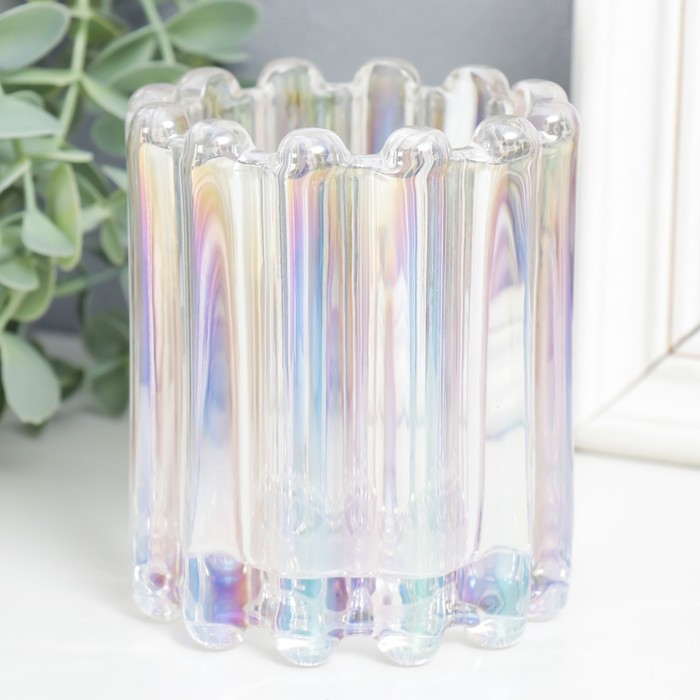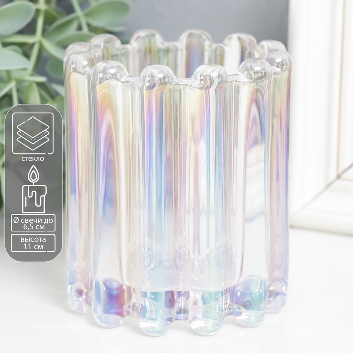 Стеклянный подсвечник на 1 свечу «Блюр», d=6.5 см, перламутр, 9×9×11 см