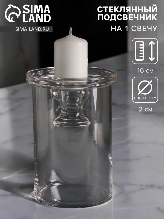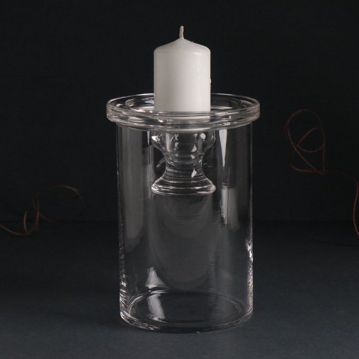 Стеклянный подсвечник на 1 свечу «Цилиндр широкий», прозрачный, d=2 см и d=8 см; 11×11×16 см