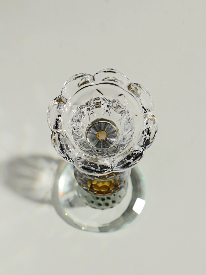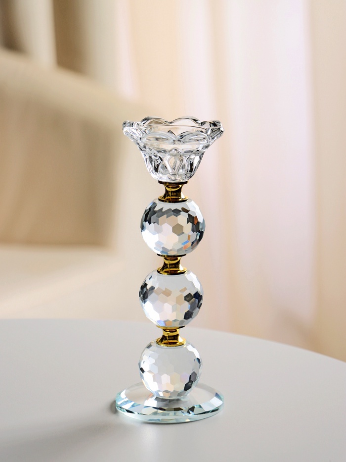 Стеклянный подсвечник на 1 свечу «Цветочек с тремя шарами», 18×7×7 см