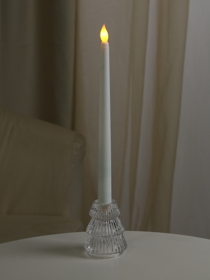 Прозрачный аксессуар, который добавит праздничного сияния вашему интерьеру — изящный подсвечник в форме ёлочки. Его рифлёная поверхность создаёт эффект мерцания, преломляя свет свечи и наполняя пространство тёплыми бликами. Идеально подходит для новогодних и рождественских вечеров, но при этом универсален для любого времени года.