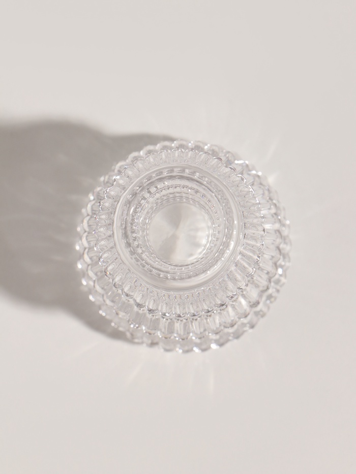 * Элегантность в деталях: прозрачное стекло с рифлёным узором создаёт игру света, превращая обычную свечу в миниатюрный арт-объект.