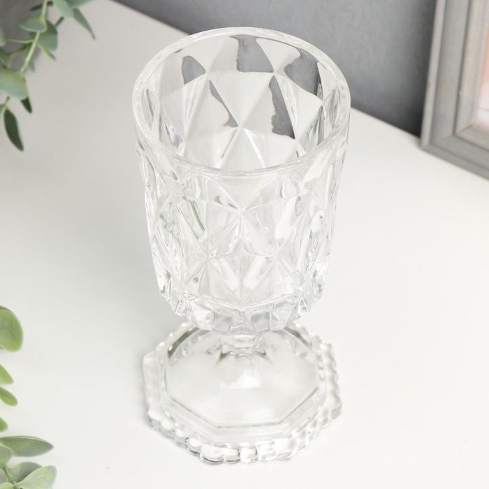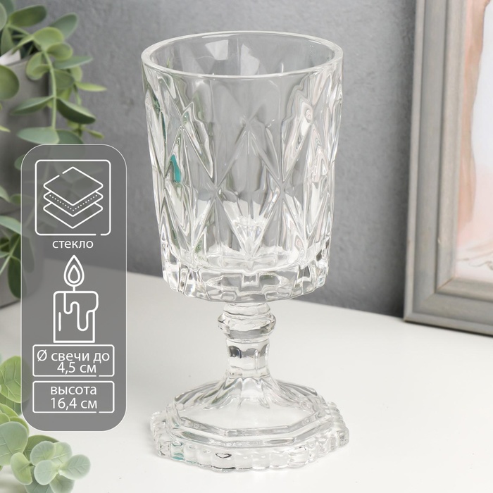 Стеклянный подсвечник на 1 свечу «Грани», бокал на ножке прозрачный, 16.4×8×8.5 см