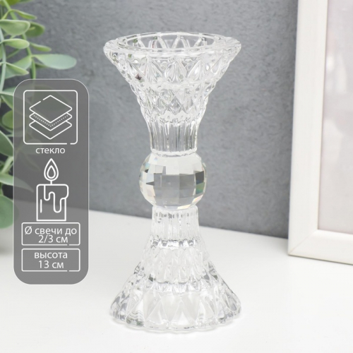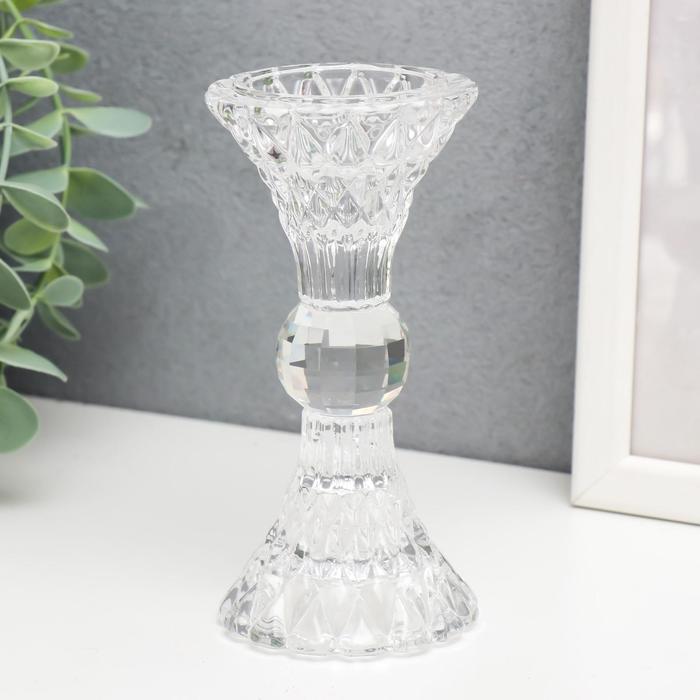 Стеклянный подсвечник на 1 свечу «Кристалл», прозрачный, 13×6×6 см