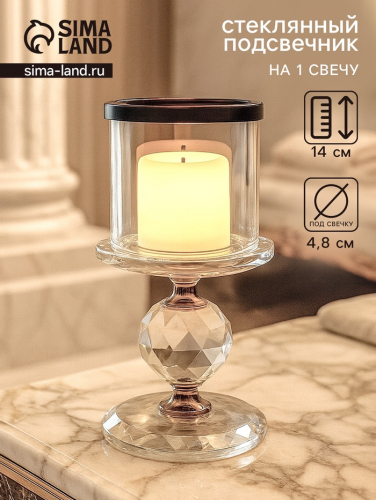 Стеклянный подсвечник на 1 свечу «Кристалл шар», чёрные вставки, 14×7×7 см