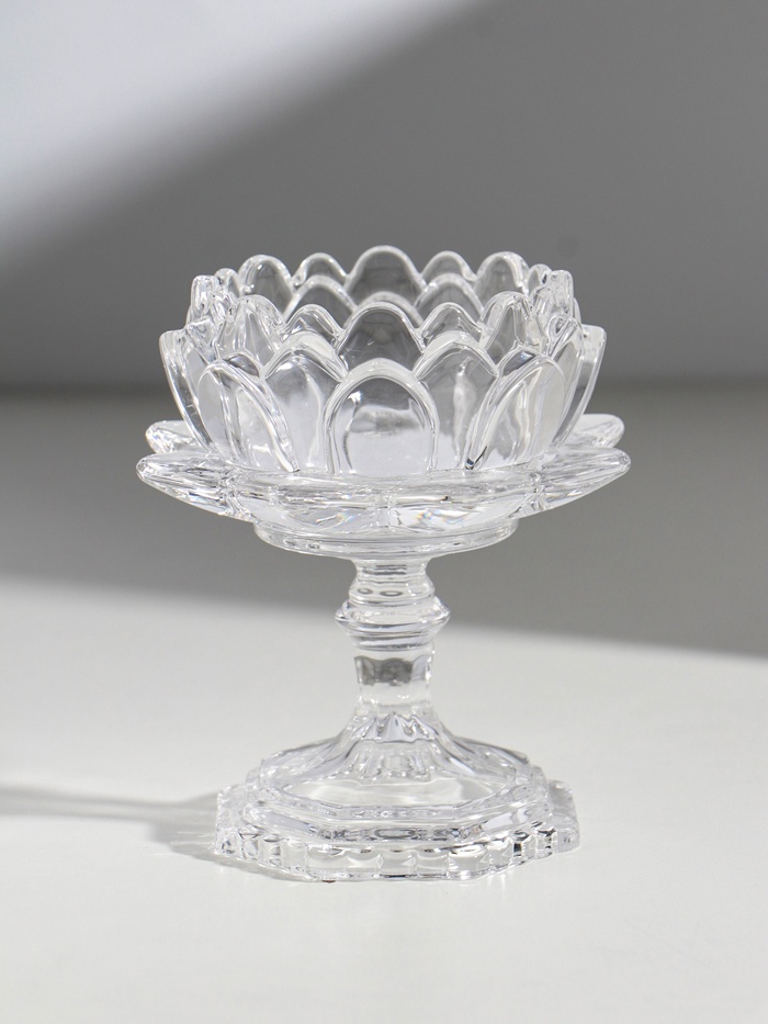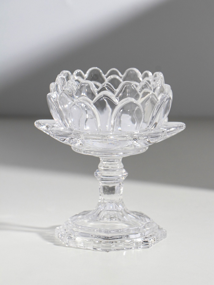 Стеклянный подсвечник на 1 свечу «Лотос», прозрачный, 12.7×11.7×11.7 см