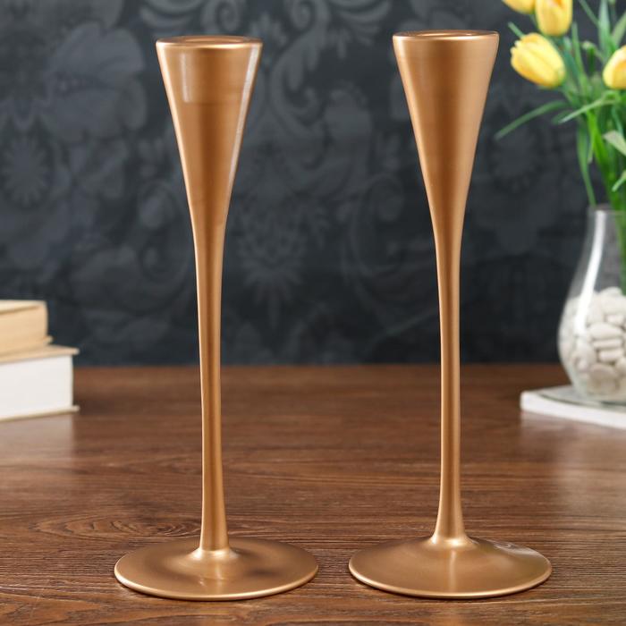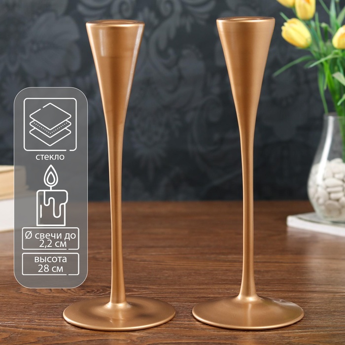 Стеклянный подсвечник на 1 свечу «Узкий бокал», набор 2 шт., золото матовое, 28×10.8×10.8 см