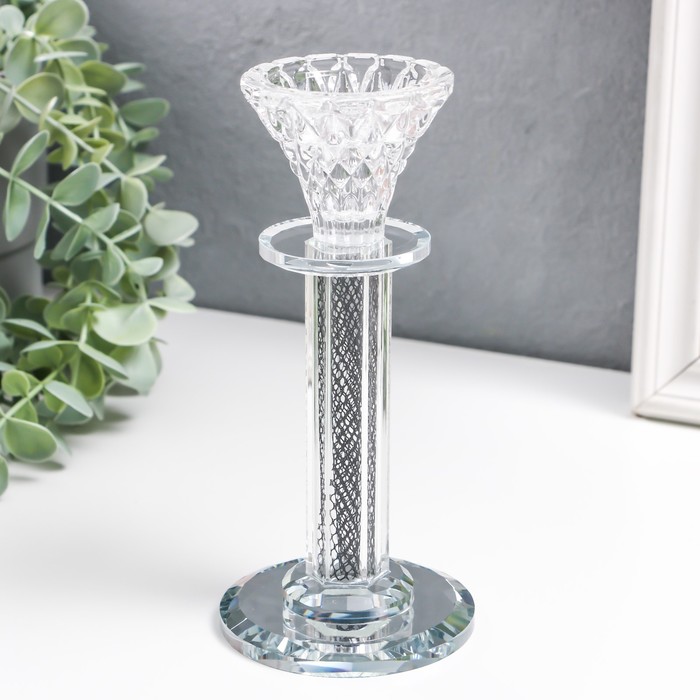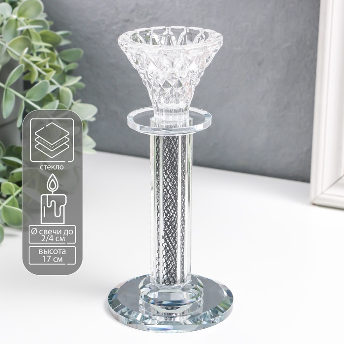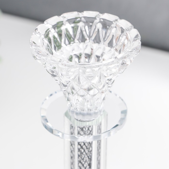 Стеклянный подсвечник на 1 свечу «Узорный бутон», на ножке, d=2 см и 4 см; 7.7×7.7×17 см