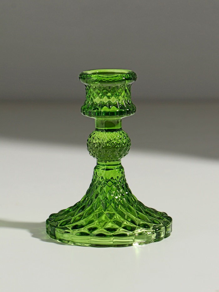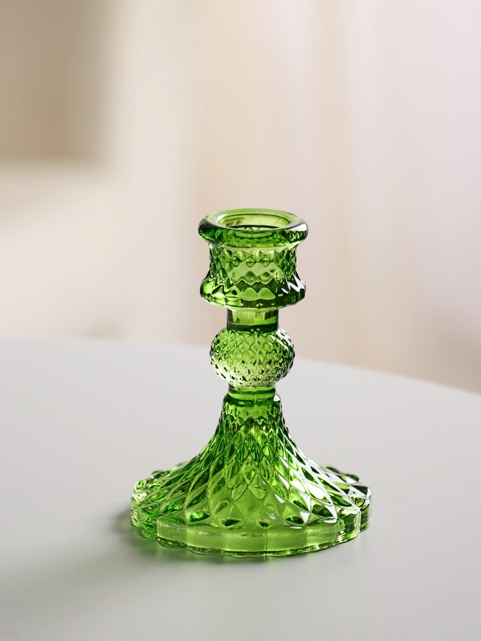 Стеклянный подсвечник на 1 свечу «Женева», d=2.2 см, зелёный, 10.5×7.7×7.7 см
