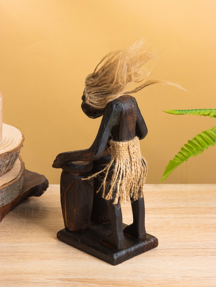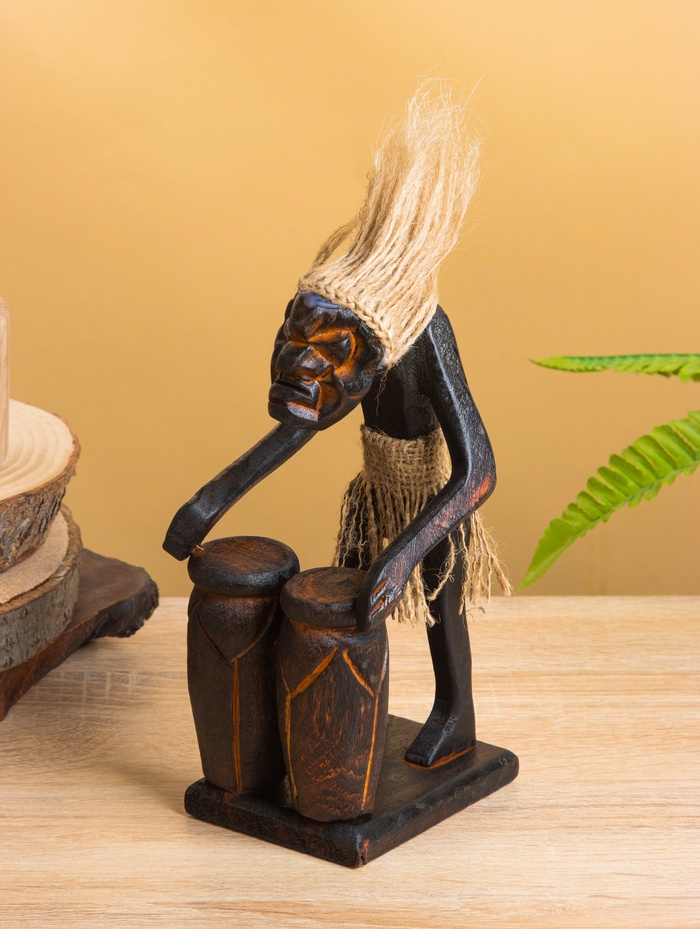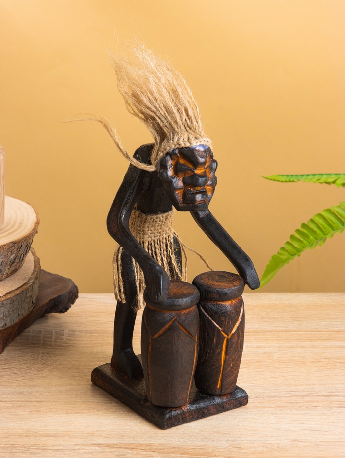 Сувенир «Абориген с двумя барабанами», 19×9×9 см, дерево