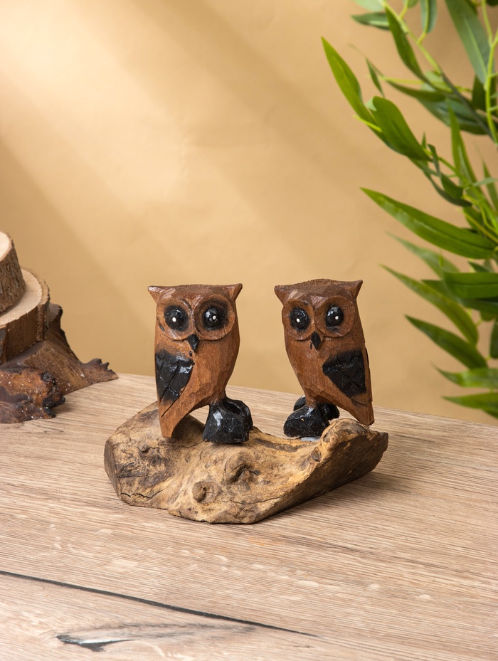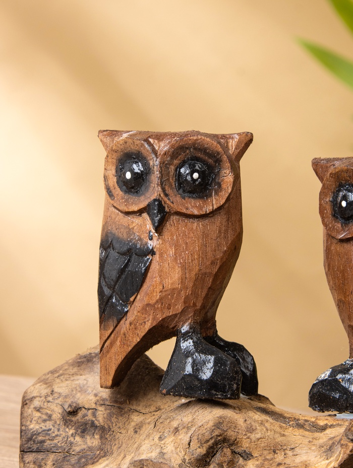 * Фигуры сов и филинов передают характеры: один задумчивый, другой — бдительный.