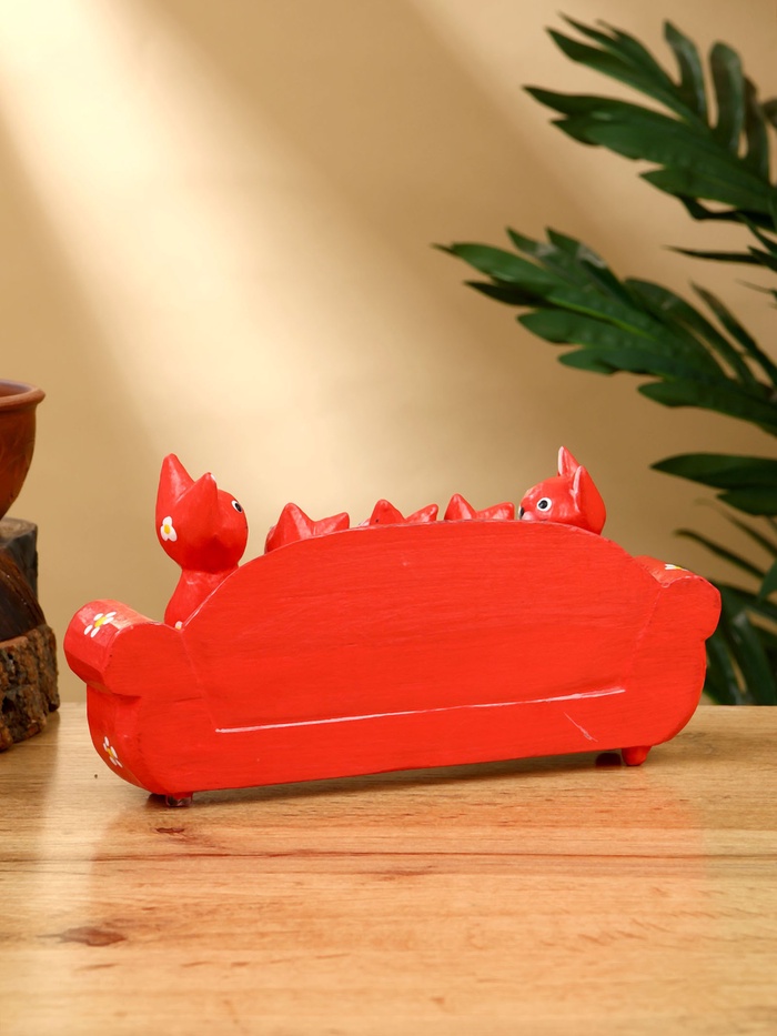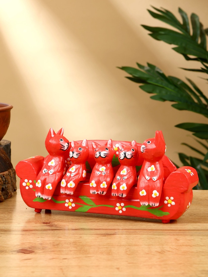 Сувенир «Кошачье семейство», 20×5×10 см, дерево, красный