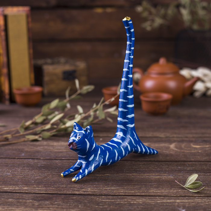 Сувенир «Кошка синяя под кольца», 13×3×14 см, дерево