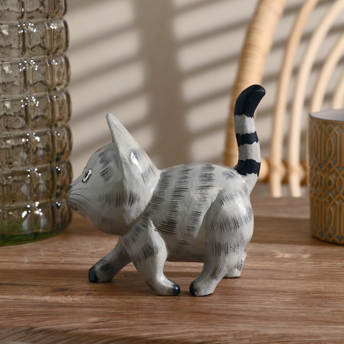 Сувенир «Котик», 10×11×6.5 см, дерево, серый