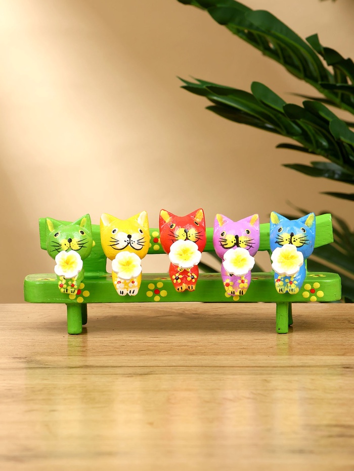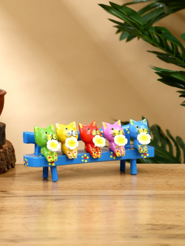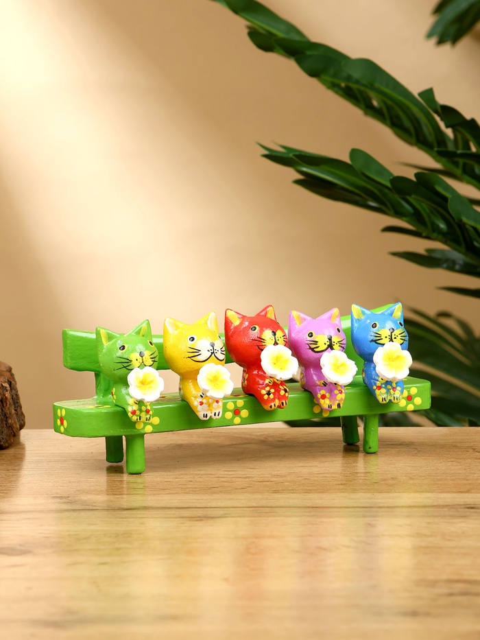Сувенир «Котята на скамейке», 19×8×6 см, дерево, зелёный