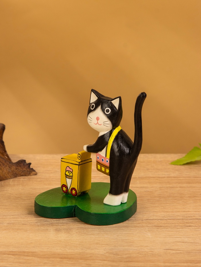 Сувенир на подставке дерево «Кошка мороженщик», 7×8×10 см, дерево