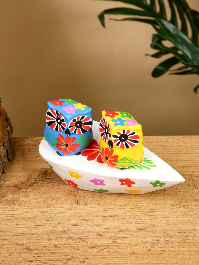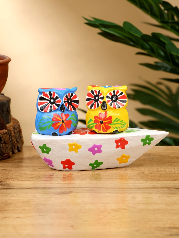 Сувенир «Пара совят», 14×7×9 см, дерево, жёлтый, синий