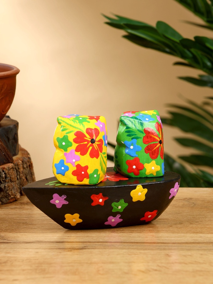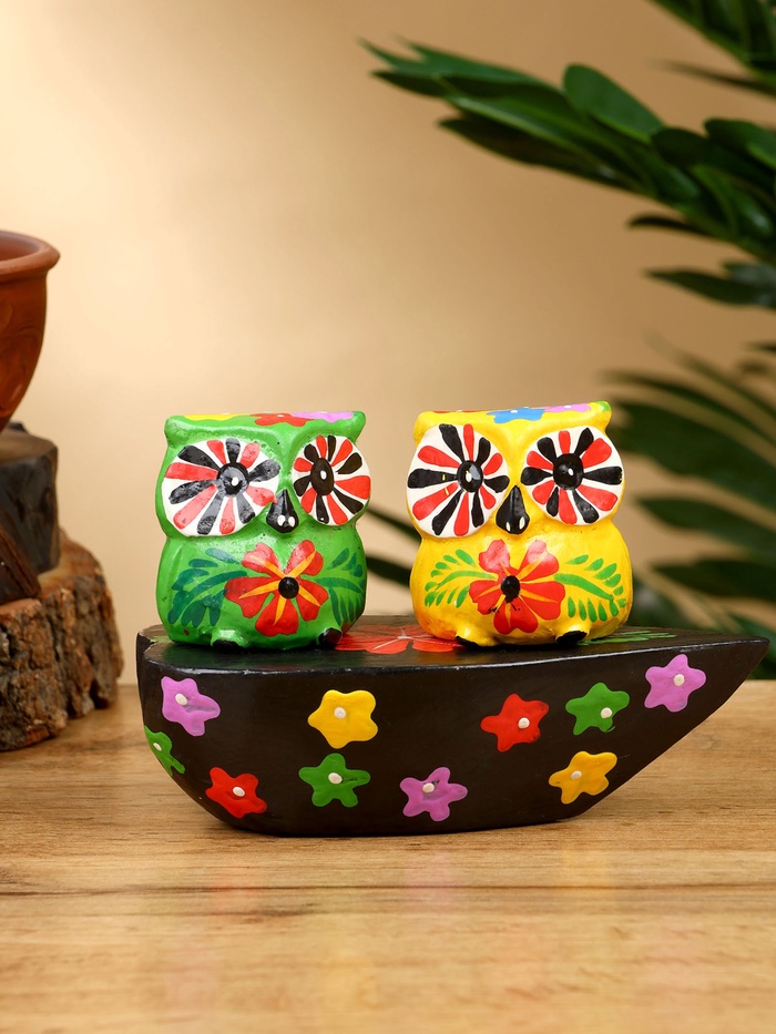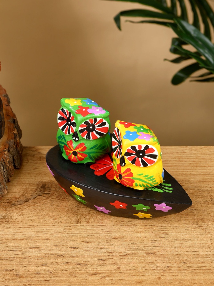 Сувенир «Пара совят», 14×7×9 см, дерево, жёлтый, зелёный