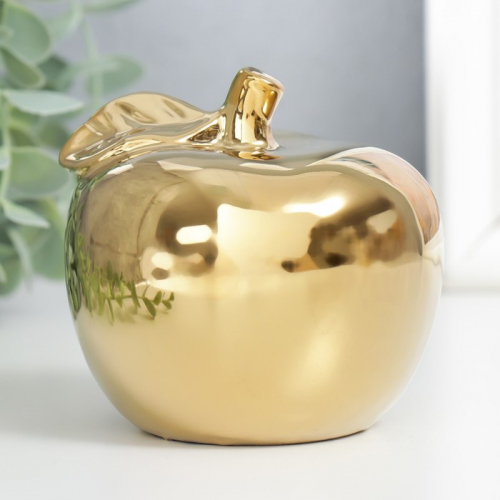 Сувенир «Яблоко с золотым листом», 10×10×12 см, матовый белый