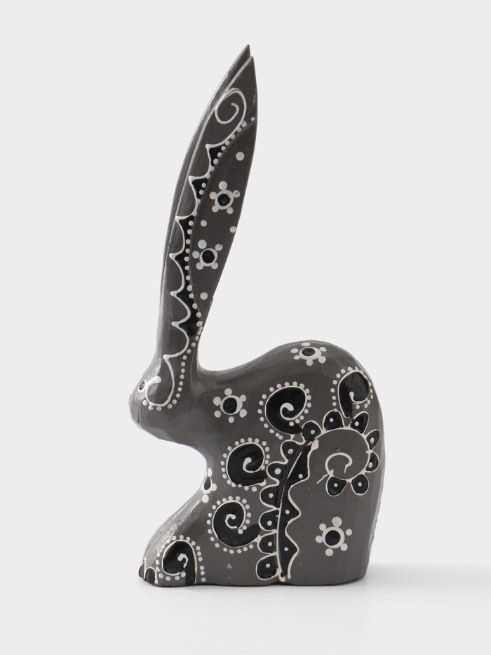 Деревянный заяц — выразительная скульптура высотой 24 см, выполненная вручную из натурального дерева. Его вытянутая форма и мягкие серые тона создают ощущение спокойствия, а намёк на пасхальную символику делает его уместным в праздничные дни и в повседневной жизни. Это не просто сувенир — это тихий напоминатель о весне, обновлении и простых радостях.