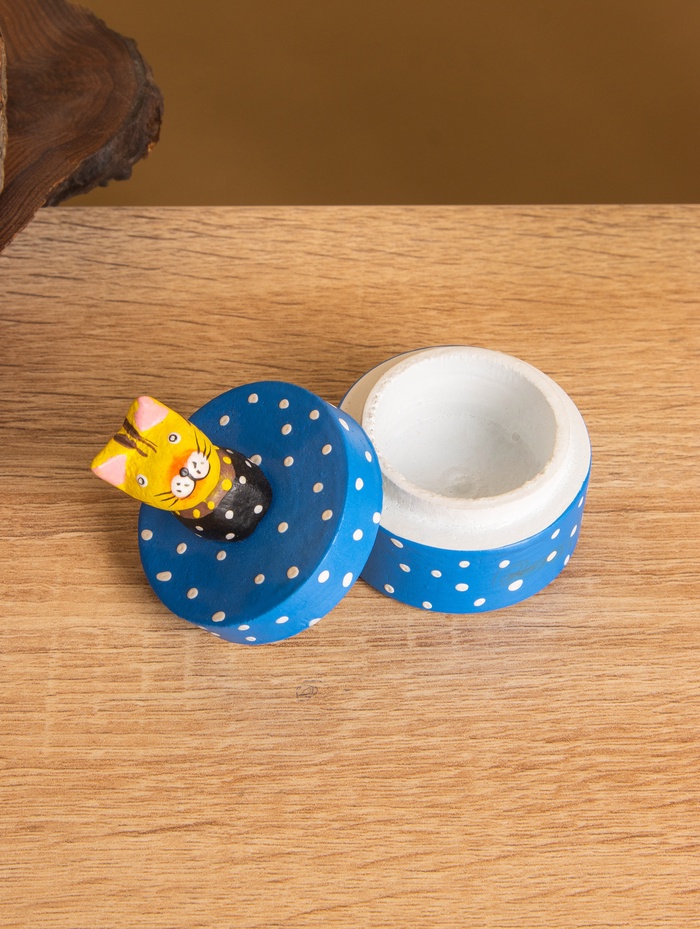 Сувенирная шкатулка «Котик», 5×5×7.5 ± см, дерево, синяя