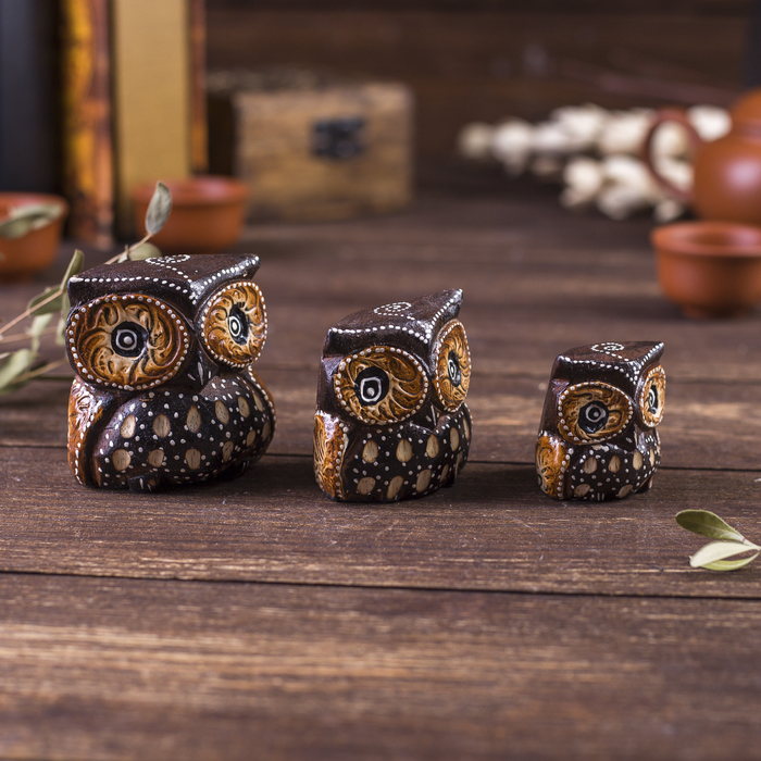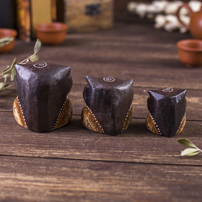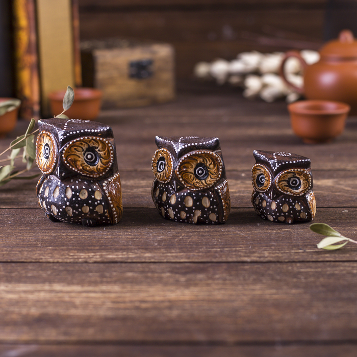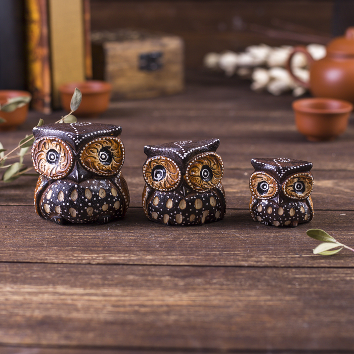 Сувенирный набор «Совы с точечным узором», 3 шт., 6×14×7 см, дерево