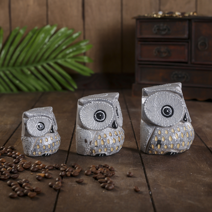 Сувенирный набор «Совы серые пятнистые», 6×19×8 см, дерево