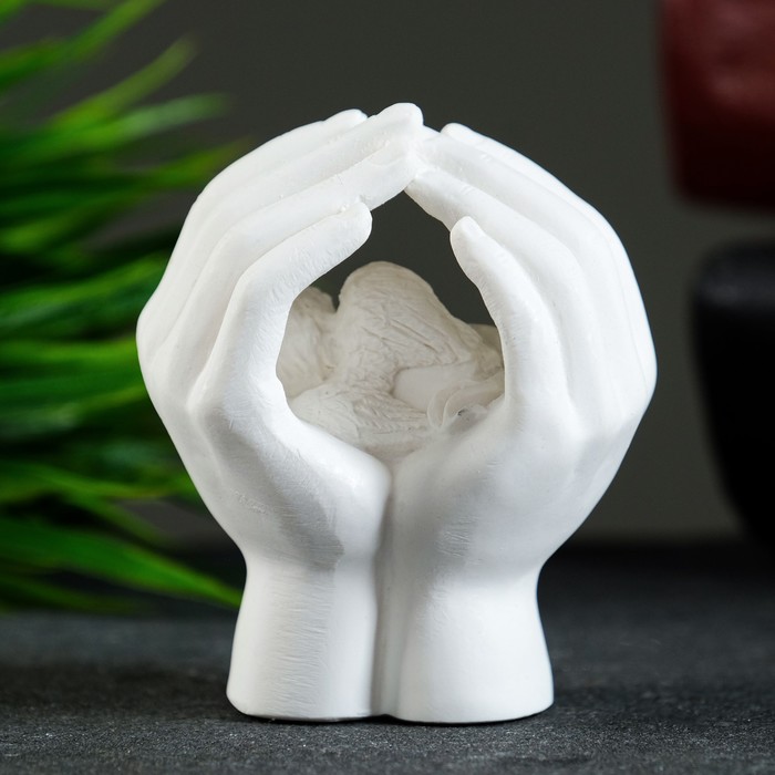 Фигурка «Ангелочек спящий в руках», белый, 6.5 см