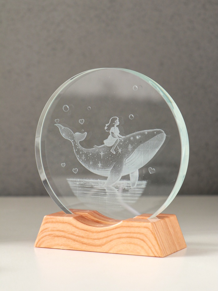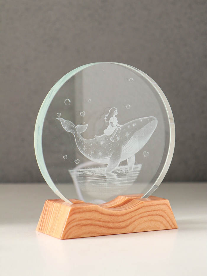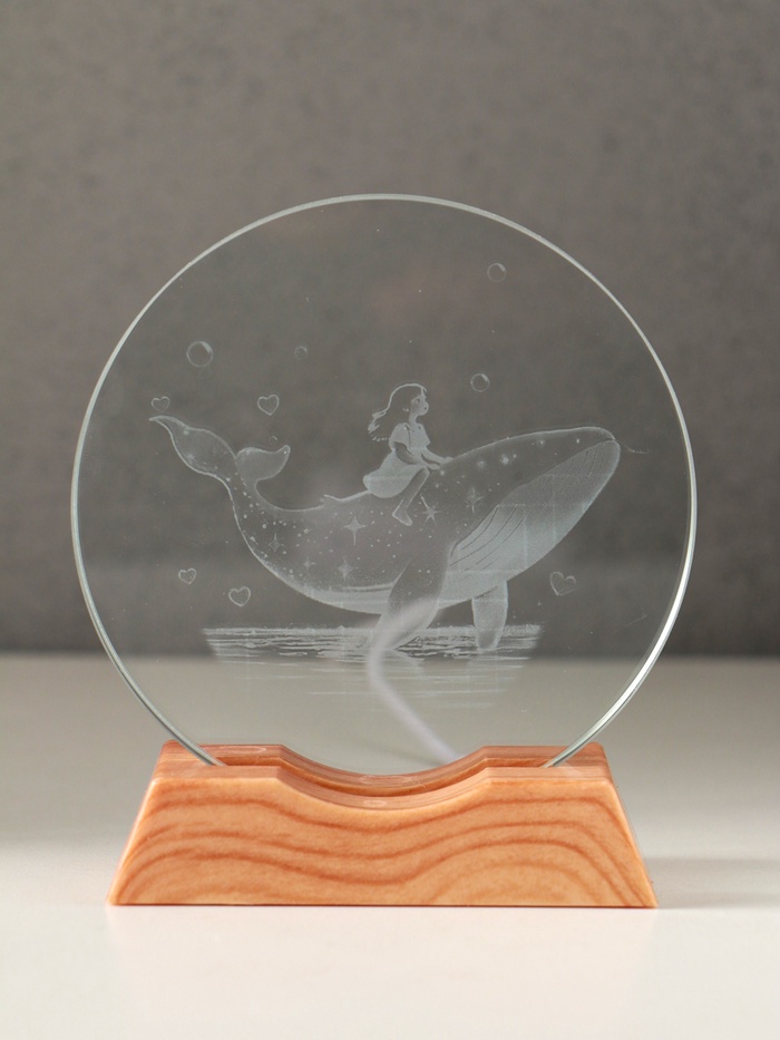 Эта голографическая световая фигура создаёт в комнате настоящее волшебство. Поместите её на стол или полку — и сцена с девочкой и китом оживёт, наполняя пространство уютом и спокойствием. Идеальное решение для вечернего отдыха, мягкой подсветки рабочего места или создания особой атмосферы в детской.