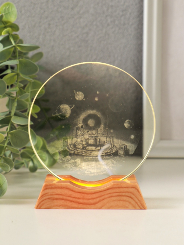 Световая фигурка стекло «Диск. Голограмма: Космическая станция», 5хLED, d=10 см, USB, 10×4×11.4 см