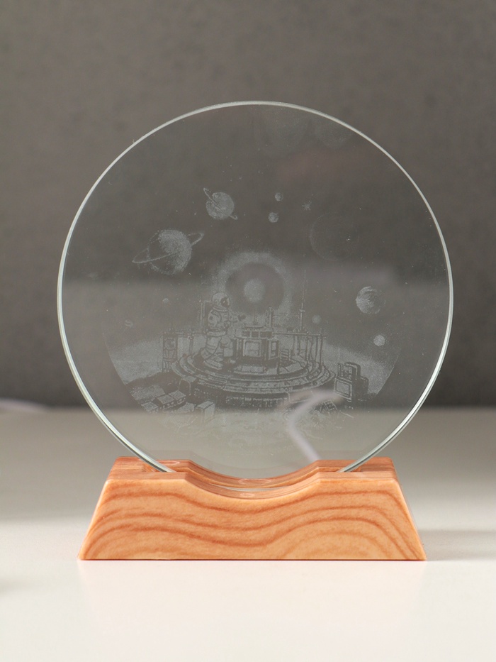 * Чёткая 3D-голограмма в круглом стеклянном диске.