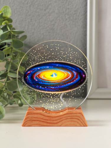 Световая фигурка стекло «Диск. Голограмма: Млечный путь», 5×LED, d=10 см, USB, цветной, 10×4×11.4 см