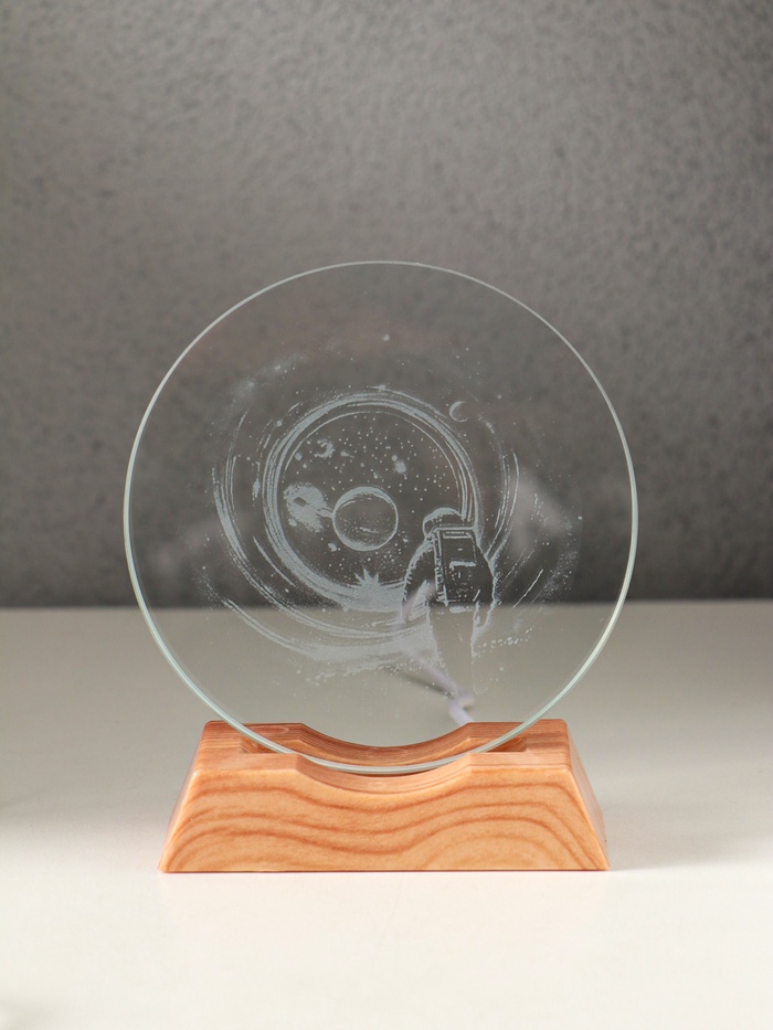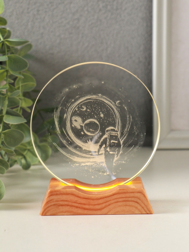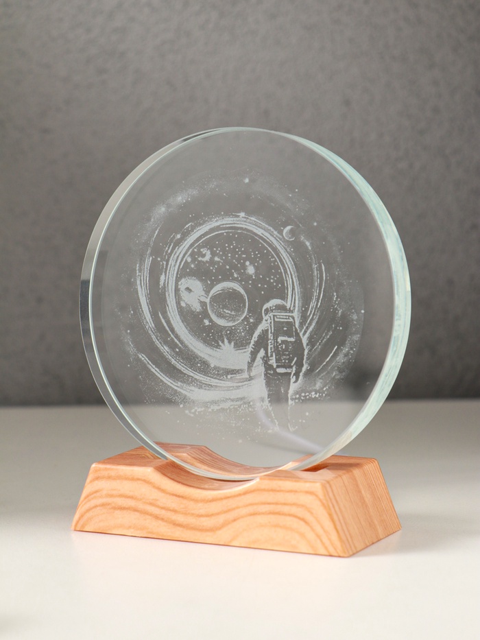 Световая фигурка стекло «Диск. Голограмма: Высадка космонавта на луну», 5×LED, d=10 см, USB, 10×4×11.4 см