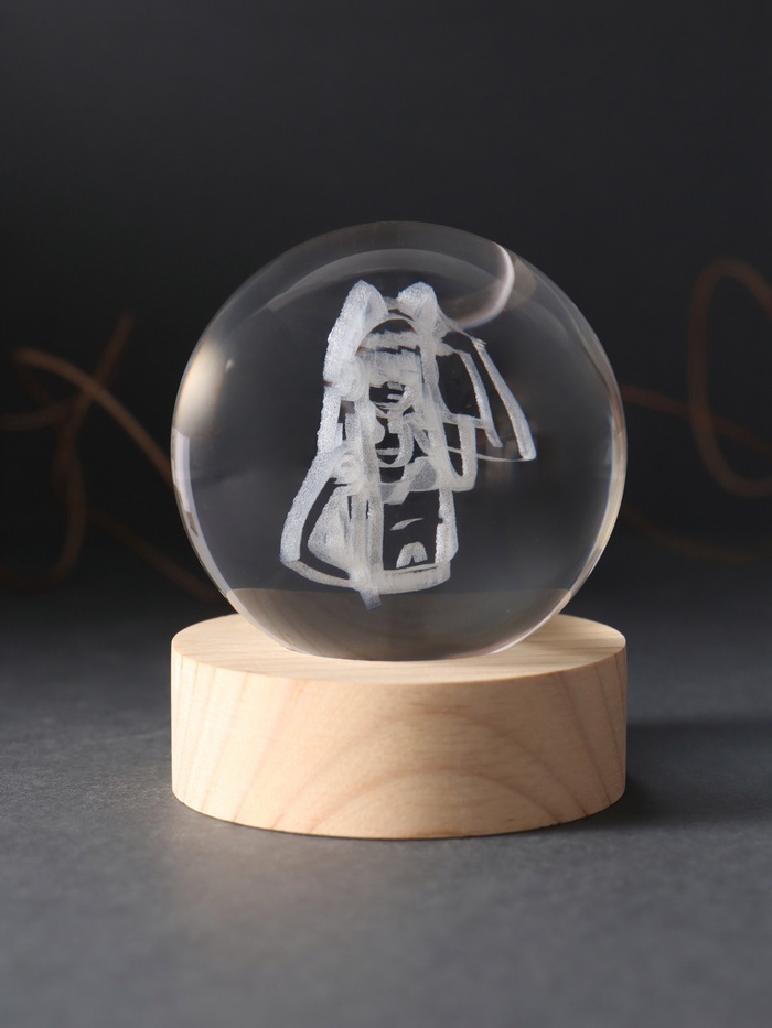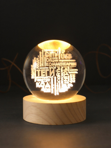 Световая фигурка стекло «Шар. Голограмма: Аниме», d=6 см, подставка дерево, USB