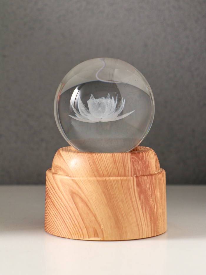 Мерцающий шар с лотосом — это больше, чем просто светильник. Его успокаивающее свечение помогает снять напряжение после долгого дня, сфокусироваться во время медитации или добавить ноту таинственности в вечерний отдых. Это готовое настроение для вашего личного пространства.
