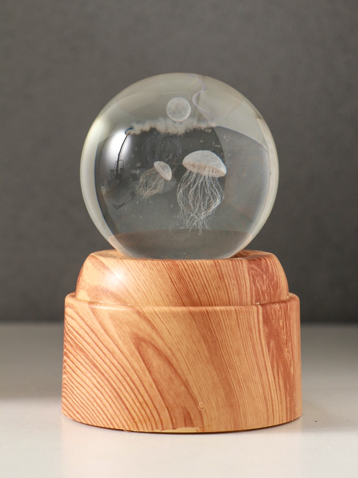 Световая фигурка стекло «Шар. Голограмма: Медузы», 6×LED, d=6 см, крутится, USB, 7×7×10 см